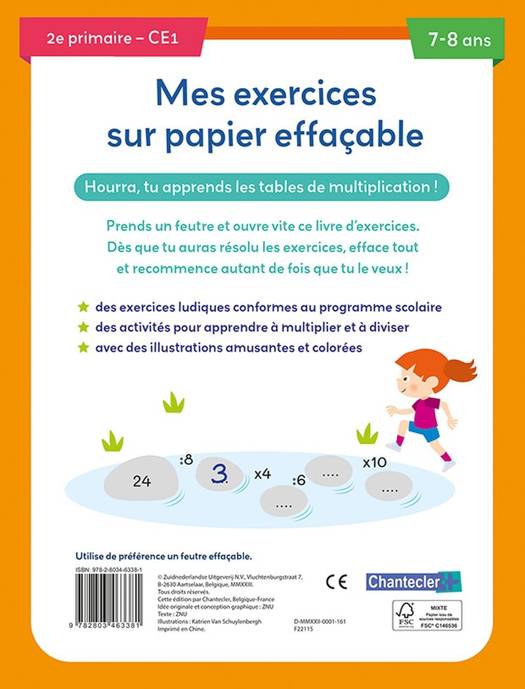 Ce livre d'exercices amusants sur papier effaçable est réutilisable et donc idéal pour les enfants qui veulent réviser les tables de multiplication. Laissez votre enfant résoudre les exercices avec un feutre, effacer les solutions et recommencer. Amusement et apprentissage vont de pair ! Pour les enfants de 7-8 ans qui veulent apprendre à multiplier et diviser CONSEIL : Utiliser de préférence un feutre effaçable