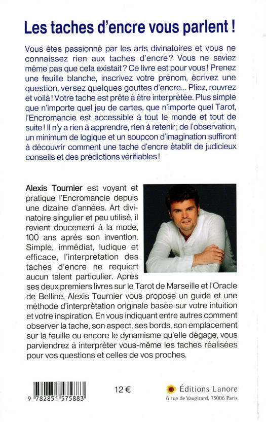 Vous êtes passionné par les arts divinatoires et vous ne connaissez rien aux taches d'encre ? Vous ne saviez même pas que cela existait ? Ce livre est pour vous ! Prenez une feuille blanche, inscrivez votre prénom, écrivez une question, versez quelques gouttes d'encre... Pliez, rouvrez et voilà ! Votre tache est prête à être interprétée. Plus simple que n'importe quel jeu de cartes, que n'importe quel Tarot, l'Encromancie est accessible à tout le monde et tout de suite ! Il n'y a rien à apprendre, rien à retenir ; de l'observation, un minimum de logique et un soupçon d'imagination suffiront à découvrir comment une tache d'encre établit de judicieux conseils et des prédictions vérifiables !