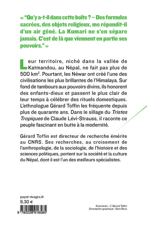 Leur territoire, niché dans la vallée de Katmandou, au Népal, ne fait pas plus de 500 km2. Pourtant, les Néwar ont créé l'une des civilisations les plus brillantes de l'Himalaya. Sur fond de tambours aux pouvoirs divins, ils honorent des enfants-dieux et passent le plus clair de leur temps à célébrer des rituels domestiques. L'ethnologue Gérard Toffin les fréquente depuis plus de quarante ans. Dans le sillage du «Tristes Tropiques» de Claude Lévi-Strauss, il raconte ce peuple fascinant en butte à la modernité.