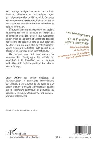 Cet ouvrage analyse les récits des soldats français, allemands et britanniques ayant participé au premier conflit mondial. Ce corpus est complété de textes marginalisés en raison du statut des auteurs-infirmières militaires ou soldats coloniaux. L'ouvrage examine les stratégies textuelles, la gamme des formes d'écriture engendrées par le conflit et le langage utilisé pour évoquer les expériences de la guerre et la manière dont ces textes ont été accueillis lors de leur parution.