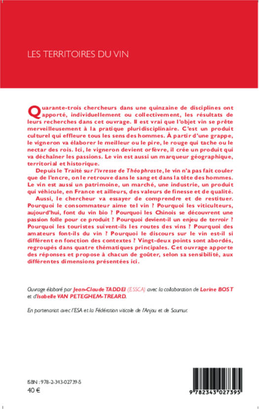 L'objet vin présente de nombreuses facettes et se prête merveilleusement à l'approche pluridisciplinaire. C'est un objet culturel qui effleure tous les sens de l'homme, un marqueur géographique, territorial et historique, mais aussi un patrimoine, un marché, une industrie, un produit qui véhicule des valeurs de finesse et de qualité. Vingt-deux chercheurs regroupent ici les résultats de leurs recherches et proposent à chacun de goûter, selon sa sensibilité, aux différentes dimensions présentées.