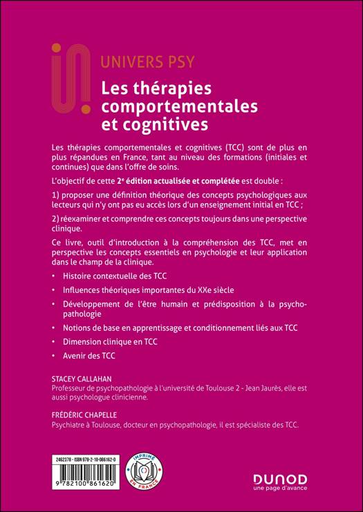 Depuis de nombreuses années, les thérapies comportementales et cognitives ont démontré leur efficacité dans le domaine de la prise en charge des différents troubles psychologiques. Cette 2èmeédition actualisée et complétée présente les recherches les plus récentes menées dans ce domaine.