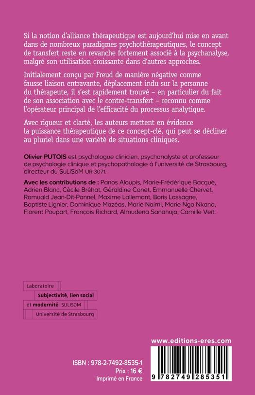 Initialement conçu par Freud de manière négative comme fausse liaison entravante, déplacement indu sur la personne du thérapeute, il s’est rapidement trouvé – en particulier du fait de son association avec le contre-transfert – reconnu comme l’opérateur principal de l’efficacité du processus analytique. C’est ce concept-clé dont l’ouvrage cherche ici à cerner la grande actualité clinique, en montrant la variété des contextes dans lesquels il est utilisé aujourd’hui, et la manière dont il y constitue une boussole plus valable que jamais, à condition d’être approché à partir du contre-transfert.