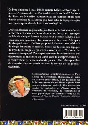 Ce livre s'adresse à tous, initiés ou non. Grâce à cet ouvrage, le lecteur s'instruira de manière traditionnelle sur les 22 Arcanes du Tarot de Marseille, approfondira ses connaissances tant dans le domaine de l'alchimie que dans celui de la psychologie, rarement exposé dans la littérature tarologique. L'auteur, licencié en psychologie, décrit ici le fruit d'années de recherches et d'études. Vous découvrirez le ou les messages cachés de chaque Arcane Majeur tout comme l'analyse des couleurs, des symboles, des nombres, et les caractéristiques de chaque Lame.... Ce livre propose également une méthode de tirage innovante et unique, basée sur la seconde topique de Freud, un tirage élargi, et des associations d'Arcanes. Le tout est accompagné d'exemples concrets de consultations qui démontrent la puissance du Tarot dans la compréhension de la réalité vécue par chacun dans le présent. Il est alors possible de s'inscrire dans un avenir en étant le moteur de ses propres décisions.