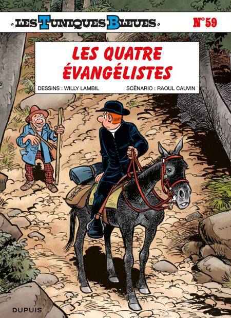 Dans leur combat contre les Confédérés, les soldats de l'Union sont tombés sur un os. À flanc de colline, le commandant William N. Pendleton, un ancien pasteur, dirige sur eux quatre canons, nommés selon les Évangiles et qui ne laissent aucune chance au régiment adverse. Le capitaine Stark doit se rendre à l'évidence : s'il ne veut pas perdre tous ses hommes, il devra opter pour une solution moins classique. Le caporal Chesterfield et le lieutenant Blutch sont alors désignés pour une mission des plus périlleuses : transformés en religieux et en idiot du village, ils devront intégrer l'équipe de Pendleton et saboter son artillerie.Pour cette 59ème aventure des Tuniques Bleues, Raoul Cauvin et Willy Lambil ont choisi d'illustrer une fois encore un épisode réel de la guerre de Sécession, théâtre des aventures de leurs héros depuis 1968. Une manière habile de dénoncer, derrière les rebondissements d'une trame drôle et légère, les dérives de la guerre et du militarisme forcené.