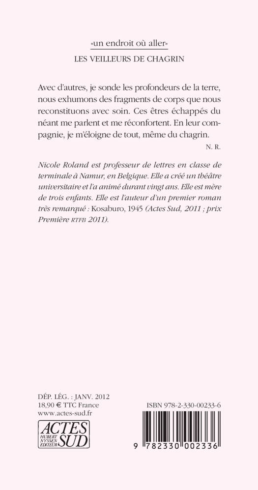 Avec d'autres, je sonde les profondeurs de la terre, nous exhumons des fragments de corps que nous reconstituons avec soin. Ces êtres échappés du néant me parlent et me réconfortent. En leur compagnie, je m'éloigne de tout, même du chagrin.