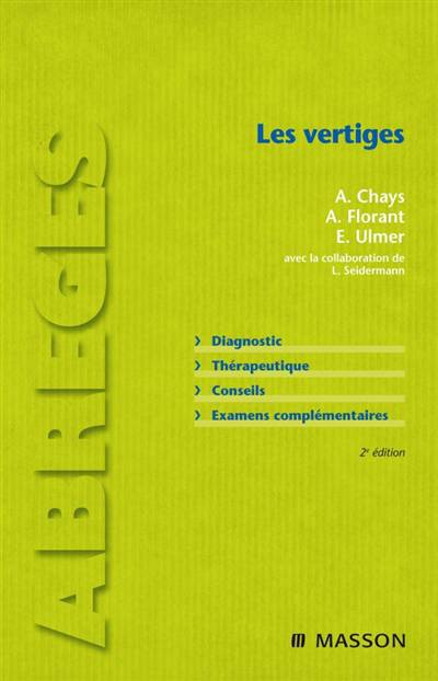 Chaque médecin généraliste reçoit au quotidien en consultation un patient qui se plaint de troubles de l'équilibration dont la principale manifestation est la sensation de vertige. Symptôme à la fois fréquent et angoissant, parfois invalidant, le vertige répond à de multiples origines, des plus bénignes aux plus préoccupantes. Le médecin généraliste se trouve donc au coeur de la réflexion diagnostique, thérapeutique et de la prise en charge de ces patients dits ' vertigineux ' mais redoute bien souvent ce motif de consultation. Cet ouvrage pratique, rédigé par une équipe d'auteurs référents en la matière, permet de répondre à chaque question que peut se poser un médecin face à ces troubles complexes. Après un rappel des données fondamentales de la fonction d'équilibration, le praticien trouvera tous les détails d'un interrogatoire bien mené afin d'éliminer un faux vertige, de dépister une urgence vraie, de reconnaître un diagnostic évident ou d'orienter, si besoin est, son patient vers un spécialiste. L'ouvrage fait également la description des examens cliniques utiles pour confirmer le diagnostic et quantifier le dysfonctionnement des organes responsables des vertiges.