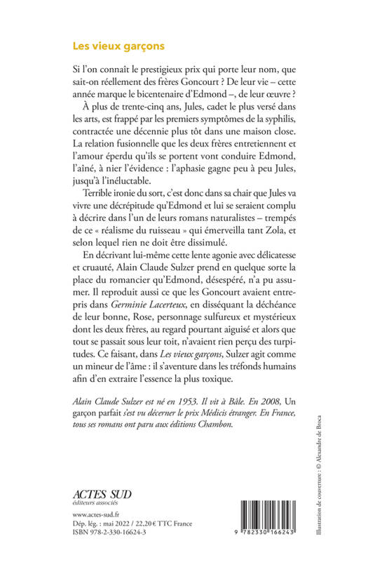 Si l'on connaît le prestigieux prix qui porte leur nom, que sait-on réellement des frères Goncourt ? De leur vie - cette année marque le bicentenaire d'Edmond -, de leur oeuvre ? À plus de trente-cinq ans, Jules, cadet le plus versé dans les arts, est frappé par les premiers symptômes de la syphilis, contractée une décennie plus tôt dans une maison close. La relation fusionnelle que les deux frères entretiennent et l'amour éperdu qu'ils se portent vont conduire Edmond, l'aîné, à nier l'évidence : l'aphasie gagne peu à peu Jules, jusqu'à l'inéluctable. Terrible ironie du sort, c'est donc dans sa chair que Jules va vivre une décrépitude qu'Edmond et lui se seraient complu à décrire dans l'un de leurs romans naturalistes - trempés de ce « réalisme du ruisseau » qui émerveilla tant Zola, et selon lequel rien ne doit être dissimulé. En décrivant lui-même cette lente agonie avec délicatesse et cruauté, Alain Claude Sulzer prend en quelque sorte la place du romancier qu'Edmond, désespéré, n'a pu assumer. Il reproduit aussi ce que les Goncourt avaient entrepris dans "Germinie Lacerteux", en disséquant la déchéance de leur bonne, Rose, personnage sulfureux et mystérieux dont les deux frères, au regard pourtant aiguisé et alors que tout se passait sous leur toit, n'avaient rien perçu des turpitudes. Ce faisant, dans "Les vieux garçons", Sulzer agit comme un mineur de l'âme : il s'aventure dans les tréfonds humains afin d'en extraire l'essence la plus toxique.