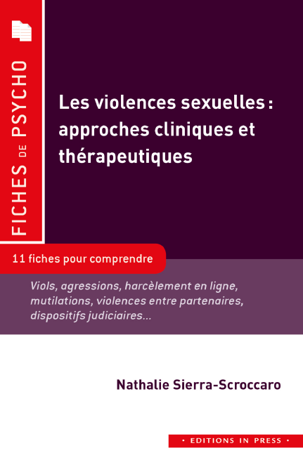Cet ouvrage aborde, en 11 fiches, différentes formes de violences sexuelles et leurs répercussions subjectives : viol et agressions sexuelles, harcèlement sexuel en ligne, violences sexuelles entre partenaires intimes, mutilations sexuelles féminines et question du genre. Il expose des pistes d’accompagnement psychologique des victimes et des auteurs de violences sexuelles et présente aussi des dispositifs judiciaires.