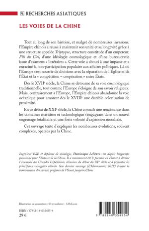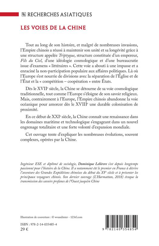 Tout au long de son histoire, et malgré de nombreuses invasions, l'Empire chinois a réussi à maintenir son unité et sa longévité grâce à une structure appelée Triptyque, structure constituée d'un empereur, Fils du Ciel, d'une idéologie cosmologique et d'une bureaucratie issue d'examens littéraires . Cette voie a abouti à une impasse et a enraciné la non-participation populaire aux affaires politiques. Là où l'Europe s'est nourrie de divisions avec la séparation de l'Église et de l'État et la compétition - coopération entre États. Dès le XVIIe siècle, la Chine se détourne de sa voie cosmologique traditionnelle, tout comme l'Europe s'éloigne de son savoir religieux. Mais, contrairement à l'Europe, l'Empire chinois abandonne la voie océanique pour amorcer dès le XVIIIe une durable colonisation de proximité. En ce début de XXIe siècle, la Chine connaît une renaissance dans les domaines maritime et technologique s'engageant dans un nouvel engrenage totalitaire et une forte volonté d'expansion mondiale. Cet ouvrage tente d'expliquer les nombreuses évolutions, souvent complexes, opérées par la Chine.