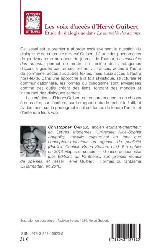 Cet essai est le premier à aborder exclusivement la question du dialogisme dans l'oeuvre d'Hervé Guibert. L'étude des phénomènes de plurivocalisme au coeur du journal de l'auteur, Le mausolée des amants, permet de mettre en lumière des stratagèmes discursifs guidés par un seul leitmotiv : l'accès, accès à l'autre de soi-même, accès aux autres textes, mais aussi accès à l'autre hors-texte.