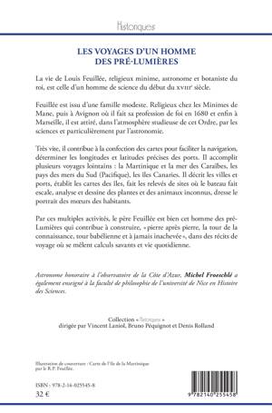 La vie de Louis Feuillée, religieux minime, astronome et botaniste du roi, est celle d’un homme de science du début du XVIIIe siècle. Religieux chez les Minimes de Mane, il est attiré, dans l’atmosphère studieuse de cet Ordre, par les sciences et particulièrement par l’astronomie. Très vite, il contribue à la confection des cartes pour faciliter la navigation, déterminer les longitudes et latitudes précises des ports. Il décrit les villes et ports, établit les cartes des îles, fait les relevés de sites où le bateau fait escale, analyse et dessine des plantes et des animaux inconnus, dresse le portrait des moeurs des habitants. Par ces multiples activités, le père Feuillée est un homme des pré-Lumières qui contribue à construire, "pierre après pierre, la tour de la connaissance, tour babélienne et à jamais inachevée", dans des récits de voyage où se mêlent calculs savants et vie quotidienne.