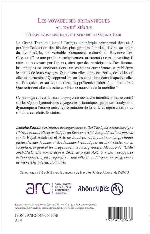 Le Grand Tour, périple continental destiné à parfaire l'éducation des fils de bonne famille, devient au cours du XVIIIe siècle un véritable phénomène culturel au Royaume Uni et attire de nouveaux participants, ainsi que des participantes. Des femmes britanniques se lancent alors sur les routes européennes et publient les récits de leurs voyages. Qu'apprend-on sur les conditions dans lesquelles elles se déplaçaient et sur leur manière d'appréhender l'altérité continentale ? Que retiraient-elles de cette expérience nouvelle de la mobilité ?