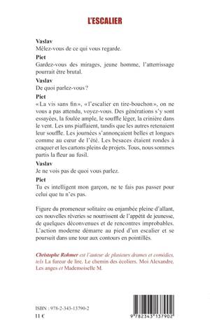 Figure du promeneur solitaire ou enjambée pleine d'allant, ces nouvelles rêveries se nourrissent de l'appétit de jeunesse, de quelques déconvenues et de rencontres improbables. L'action moderne démarre au pied d'un escalier et se poursuit dans une tour aux contours en pointillés.