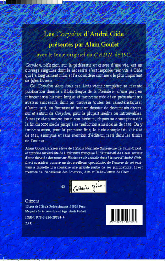"Corydon", réflexion sur la pédérastie et œuvre d'une vie, est un ouvrage singulier dont la nécessité s'est imposée très vite à Gide qui l'a longuement mûri et l'a considéré comme "le plus important de [s]es livres". Cette étude vient compléter sa récente publication dans la Bibliothèque de la Pléiade. On retrace son histoire, en fournissant tout un dossier de documents, pour la plupart inédits ou introuvables. On y trouvera aussi le texte du C.R.D.N. de 1911, anonyme et sans mention d'éditeur.