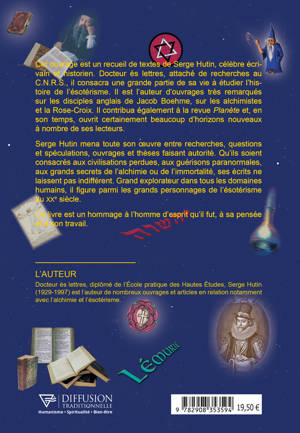 Cet ouvrage est un recueil de textes de Serge Hutin, célèbre écrivain et historien. Docteur ès lettres, attaché de recherches au CNRS, il consacra une grande partie de sa vie à étudier l'histoire de l'ésotérisme. Il est l'auteur d'ouvrages très remarqués sur les disciples anglais de Jacob Boehme, sur les alchimistes et la Rose-Croix. Il contribua également à la revue Planète, et en son temps, il ouvrit certainement beaucoup d'horizons nouveaux à nombre de ses lecteurs. Serge Hutin poursuivra toute sa vie son oeuvre entre recherches, questions et spéculations, ouvrages et thèses faisant autorité. Qu'ils soient consacrés aux civilisations perdues, aux guérisons paranormales, aux grands secrets de l'alchimie ou de l'immortalité, les écrits de Serge Hutin ne laissent pas indifférent. Grand explorateur dans tous les domaines humains, Serge Hutin figure parmi les grands personnages de l'ésotérisme du XXe siècle. Ce livre est un hommage à l'homme d'esprit qu'il fut, à sa pensée et à son travail.