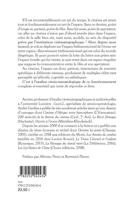 S'il est incontestablement un art du temps, le cinema est avant tout et fondamentalement un art de l'espace. Sans ce dernier, point d'image et, partant, point de film. Sans lui aussi, point de spectateur, car aller au cinema n'est-ce pas d'abord prendre place dans l'espace, celui de la salle bien sur, mais aussi, au-dela, au sein du dispositif prevu par l'institution cinematographique ? Alors depuis mon fauteuil, je vois se deployer sur l'espace bidimensionnel de l'ecran cet autre espace, illusoirement tridimensionnel qui est celui du monde diegetique. Et pour pouvoir suivre la lutte du heros aux prises avec l'espace hostile qui lui resiste, je suis entre dans cet espace singulier que suppose la communication entre le film et son spectateur.Au cinema, l'espace est donc partout, intervenant de maniere specifique a differents niveaux, produisant de multiples effets tant perceptifs qu'affectifs, cognitifs ou esthetiques.C'est a l'analyse semio-narratologique de ce fonctionnement complexe et essentiel que tente de repondre ce livre.