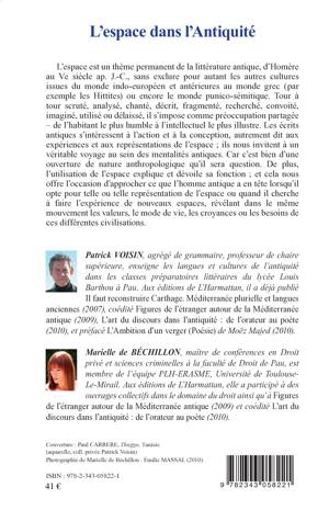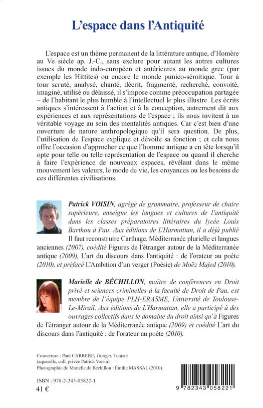 L'espace est un thème permanent de la littérature antique, d'Homère au Ve siècle ap. J.-C. Il s'impose comme une préoccupation partagée, de l'habitant le plus humble à l'intellectuel le plus illustre. Les écrits antiques s'intéressent aux expériences et aux représentations de l'espace et nous invitent à un voyage au sein des mentalités antiques : c'est d'une ouverture de nature anthropologique dont il sera question, l'espace révélant également les valeurs, le mode de vie, les croyances ou les besoins de ces différentes civilisations.