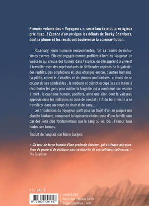 Rosemary, jeune humaine inexpérimentée, fuit sa famille de richissimes escrocs. Elle est engagée comme greffière à bord du Voyageur, un vaisseau qui creuse des tunnels dans l'espace, où elle apprend à vivre et à travailler avec des représentants de différentes espèces de la galaxie : des reptiles, des amphibiens et, plus étranges encore, d'autres humains. La pilote, couverte d'écailles et de plumes multicolores, a choisi de se couper de ses semblables ; le médecin et cuistot occupe ses six mains à réconforter les gens pour oublier la tragédie qui a condamné son espèce à mort ; le capitaine humain, pacifiste, aime une alien dont le vaisseau approvisionne les militaires en zone de combat ; l'IA du bord hésite à se transférer dans un corps de chair et de sang...