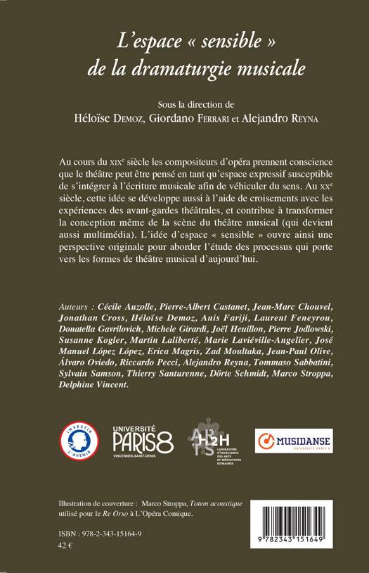 Au cours du XIXe siècle, les compositeurs d'opéra prennent conscience que le théâtre peut être pensé en tant qu'espace expressif susceptible de s'intégrer à l'écriture musicale afin de véhiculer du sens. Au XXe siècle, cette idée se développe avec les expériences des avant-gardes théâtrales, et contribue à transformer la conception même de la scène du théâtre musical (qui devient aussi multimédia). L'idée d'espace « sensible » ouvre ainsi une perspective originale pour aborder l'étude des processus qui porte vers les formes de théâtre musical d'aujourd'hui.