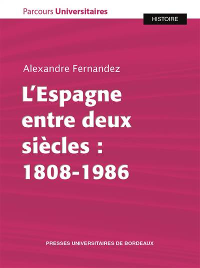L'Espagne semble être demeurée longtemps, presque structurellement, entre deux siècles. Son histoire contemporaine est habituellement présentée comme singulière en Europe occidentale, véhiculant une image négative. De nombreux travaux ont cependant permis de resituer sa trajectoire sur une ligne proche des autres pays européens, et cet ouvrage s'inscrit dans ce courant historiographique. De l'invasion des troupes napoléoniennes en 1808 à l'entrée du pays dans l'Union européenne en 1986, il cherche à préciser les formes spécifiques de son processus de modernisation économique, sociale, culturelle, politique.