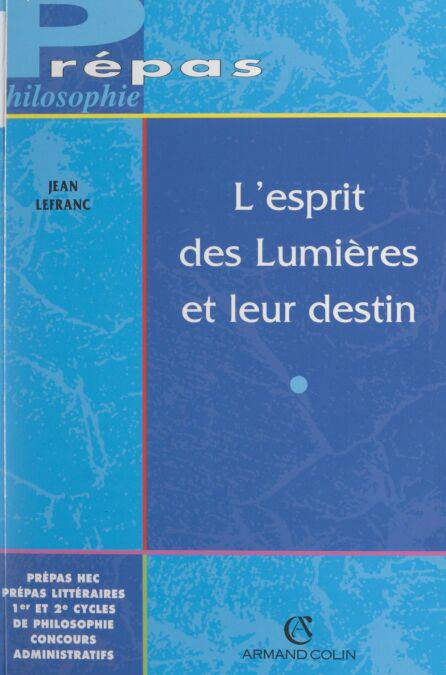 Une large destination Enseignement supérieur Classes préparatoires aux grandes écoles (ENS, ESM Saint-Cyr, HEC, ESCP, ENA). Ier et 2e cycles de philosophie. Préparations aux concours de la Fonction publique CAPES (Histoire, Géographie, Sciences sociales). Agrégation (Histoire, Géographie, Sciences sociales). Concours administratifs. L'auteur Jean Lefranc, agrégé de philosophie, maître de conférences honoraire à l'université de Paris- Sorbonne, a une longue expérience des classes préparatoires. Il a été, de 1969 à 1994, président de l'association des professeurs de philosophie. Une approche plurielle Une instrumentation pratique Un index, des clés et repères permettant une maîtrise immédiate des notions et des auteurs. Une problématique soutenue Dans quelle mesure la modernité est-elle l'héritière des Lumières ? Libéraux et révolutionnaires se sont réclamés diversement de ce courant et des penseurs "post-modernes" pourraient aisément entonner le refrain éc'est la faute à Voltaire, c'est la faute à Rousseau". Sans doute y a-t-ile là simplification abusive. Raison et nature sont des notions clés. Mais l'ouvrage montre qu'il a différents types de rationalité qui s'opposent ou se combinent selon que l'on s'inspire de Descartes ou de Newton, de Locke ou de Leibniz. Quant à la nature, les grands auteurs des Lumières n'ont cessé d'en débattre, au sujet de la religion naturelle, ou du beau naturel. Ces débats restent encore les nôtres, pour une large part. L'étude s'efforce de dégager l'unité d'un esprit des Lumières qui se caractérise par l'exercice de la rationalité critique et la conviction que la vérité, la vertu et le bonheur vont de pair. Un outil didactique et préparatoire Un cours structuré regroupant l'essentiel des savoirs. Une liste sélective des sujets proposés ou susceptibles de l'être Des sujets traités Problématiques, organisation des acquis. Les références bibliographiques essentielles Renvois à la bibliographie fondamentale.