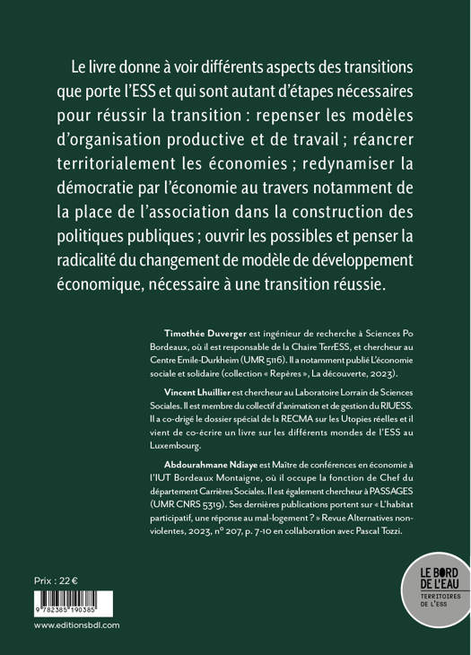 Depuis le milieu des années 2000, l'approche par la transition s'est substituée à celle du développement durable. L'urgence climatique nous enjoint à penser rapidement des modalités de transition pour la transformation de notre système économique. Conçues pendant la période du Covid-19 où les thèmes utopiques faisaient florès, les journées 2022 du RIUESS dont ce livre est tiré, visaient à renouveler la question du changement systémique et des transitions qu'il suppose en s'intéressant au rôle qu'y joue l'ESS. Il ne s'agissait nullement d'idéaliser l'ESS, même si l'hypothèse de départ postulait qu'elle constituait un levier pour un basculement dans le «monde d'après».