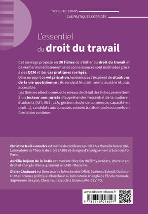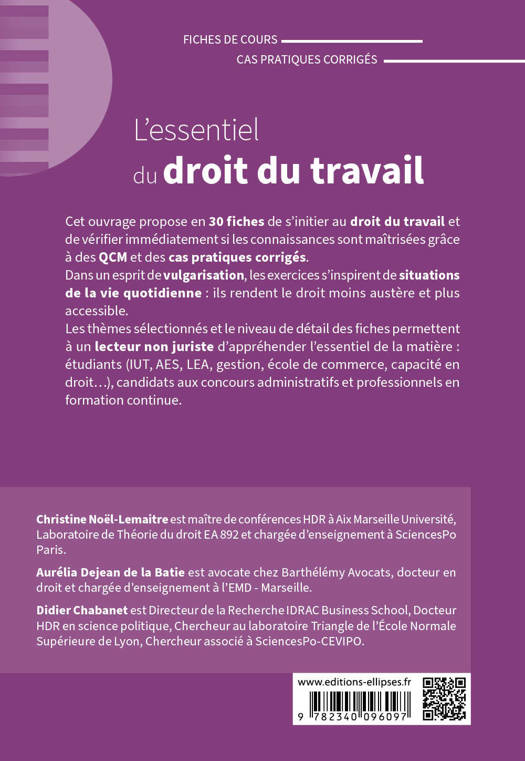 Cet ouvrage propose en 30 fiches de s’initier au droit du travail et de vérifier immédiatement si les connaissances sont maîtrisées grâce à des QCM et des cas pratiques corrigés.