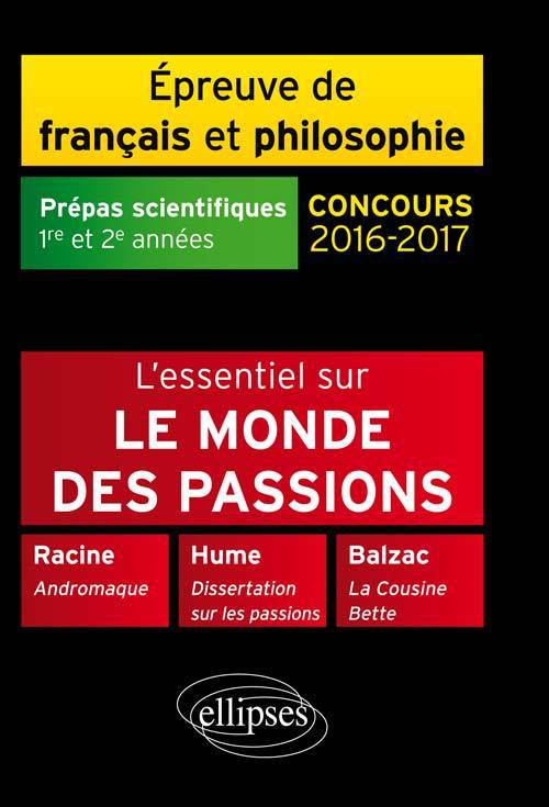 L'essentiel sur le monde des passions. Racine, Andromaque - Balzac, La Cousine Bette - Hume, Dissertation sur les passions. Épreuve de français /philosophie Prépas scientifiques 2016-2017