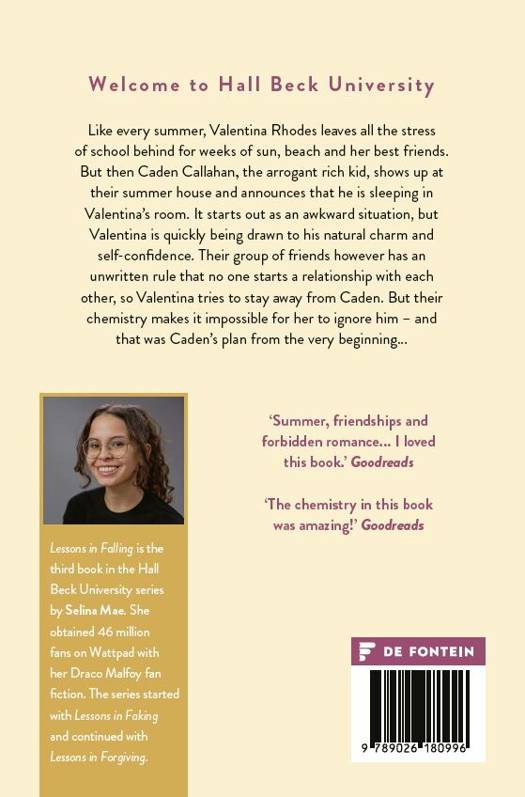 'Lessons in Falling' is the third part in the Hall Beck University series by Selina Mae, the author who has already reached 40 million fans with her Draco Malfoy fanfiction on WordPadd. The series started with 'Lessons in Forgiving' and 'Lessons in Falling'. This is the English edition.