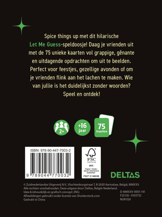met de 75 unieke kaarten vol grappige, gênante en uitdagende opdrachten om uit te beelden. Perfect voor feestjes, gezellige avonden of om je vrienden flink aan het lachen te maken. Wie van jullie is het duidelijkst zonder woorden? Speel en ontdek!