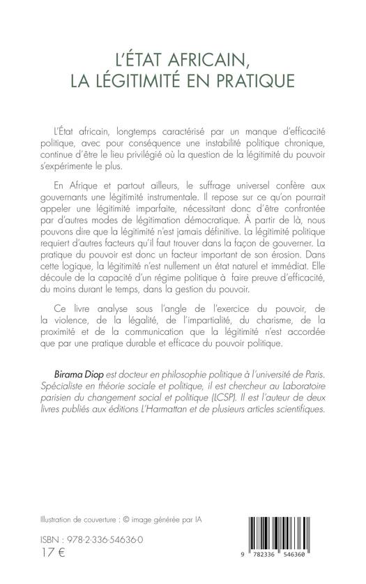 L'Etat africain, longtemps caractérisé par un manque d'efficacité politique, avec pour conséquence une instabilité politique chronique, continue d'être le lieu privilégié où la question de la légitimité du pouvoir s'expérimente le plus. En Afrique et partout ailleurs, le suffrage universel confère aux gouvernants une légitimité instrumentale. Il repose sur ce qu'on pourrait appeler une légitimité imparfaite, nécessitant donc d'être confrontée par d'autres modes de légitimation démocratique. À partir de là, nous pouvons dire que la légitimité n'est jamais définitive. La légitimité politique requiert d'autres facteurs qu'il faut trouver dans la façon de gouverner. La pratique du pouvoir est donc un facteur important de son érosion. Dans cette logique, la légitimité n'est nullement un état naturel et immédiat. Elle découle de la capacité d'un régime politique à faire preuve d'efficacité, du moins durant le temps, dans la gestion du pouvoir. Ce livre analyse sous l'angle de l'exercice du pouvoir, de la violence, de la légalité, de l'impartialité, du charisme, de la proximité et de la communication que la légitimité n'est accordée que par une pratique durable et efficace du pouvoir politique.
