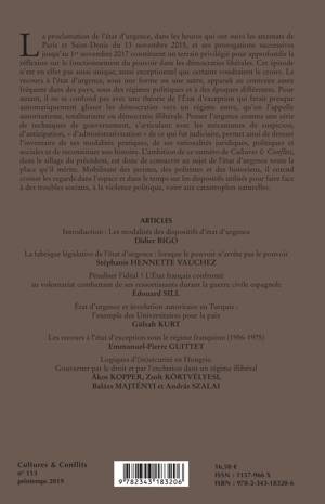 La proclamation de l'état d'urgence, dans les heures qui ont suivi les attentats de Paris et Saint-Denis du 13 novembre 2015, et ses propagations successives jusqu'au 1er novembre 2017 constituent un terrain privilégié pour approfondir la réflexion sur le fonctionnement du pouvoir dans les démocraties libérales. Cet épisode n'est en effet pas aussi unique, aussi exceptionnel que certains voudraient le croire. Le recours à l'état d'urgence, sous une forme ou une autre, apparaît au contraire assez fréquent dans les pays, sous des régimes politiques et à des époques différentes.