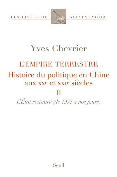 Entre la fin du XIXe siècle et la mort de Mao, le premier volume de L'Empire terrestre analysait une suite d'échecs démocratiques. Le second tome met en lumière le basculement vers l'État autoritaire après 1976. Le régime n'a pas changé la Chine sans changer lui-même. La révolution s'est muée en tradition, le maoïsme est recyclé par un pouvoir conservateur qui agit dans le monde afin qu'à l'échelle planétaire la démocratie soit l'exception qu'elle est devenue dans la Chine du XXe siècle.