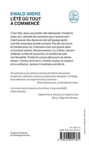 Été 1977, dans une petite ville de l’ouest. Friedrich, seize ans, redoute les semaines qui s’annoncent : il doit passer des épreuves de rattrapage après une très mauvaise année scolaire. Pas de vacances en famille pour lui, il révisera chez son grand-père, un homme sévère. Heureusement, il y a Alma, Johann et Beate, la fille de la piscine, en maillot de bain vert bouteille. Friedrich va tout découvrir en même temps : l’amour et la mort, l’amitié, la peur, le respect et la confiance. Jamais il n’oubliera cet été-là.
