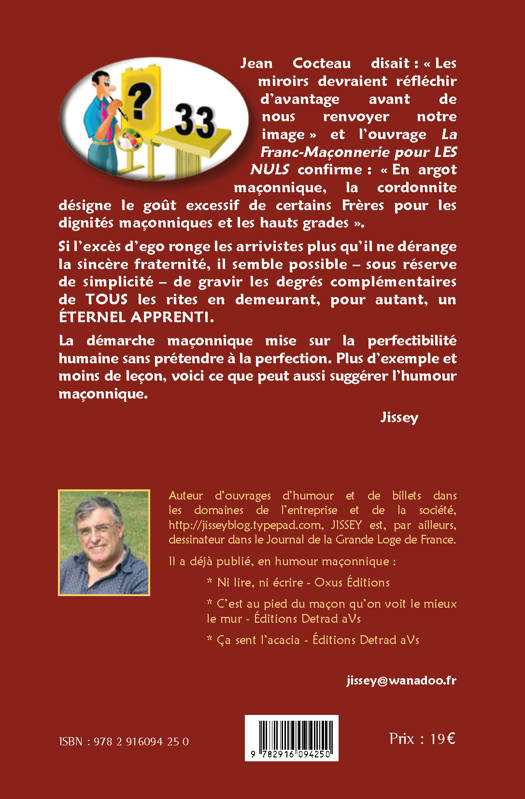 Jean Cocteau disait : « Les miroirs devraient réfléchir d'avantage avant de nous renvoyer notre image » et l'ouvrage La Franc-Maçonnerie pour Les nuls confirme : « En argot maçonnique, la cordonnite désigne le goût excessif de certains Frères pour les dignités maçonniques et les hauts grades ».