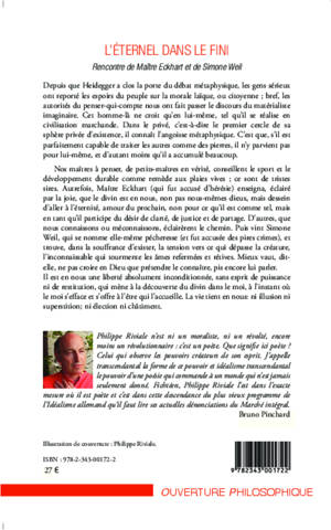 Autrefois, Maître Eckhart enseigna que le divin est en nous. Puis vint Simone Weil : mieux vaut, dit-elle, ne pas croire en Dieu que prétendre le connaître, pis encore lui parler. Il est en nous une liberté absolument inconditionnée, sans esprit de puissance ni de restitution, qui mène à la découverte du divin dans le moi, à l'instant où le moi s'efface et s'offre à l'être qui l'accueille. La vie tient en nous : ni illusion ni superstition ; ni élection ni châtiment.