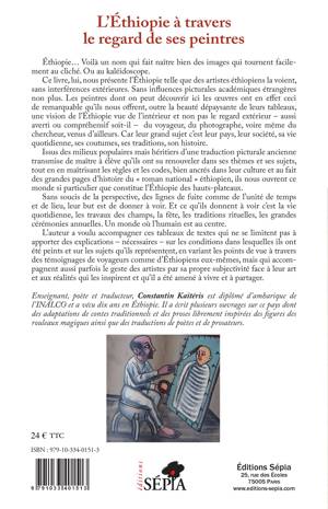 Ce livre présente l'Ethiopie telle que des artistes éthiopiens la voient, sans influence extérieure ou étrangère. Les peintres nous offrent, outre la beauté dépaysante de leurs tableaux, une vision de l'Ethiopie vue de l'intérieur. Le grand sujet c'est leur pays, leur société, sa vie quotidienne, ses traditions, son histoire. Un monde où l'humain est au centre. (multiples reproductions en couleur)