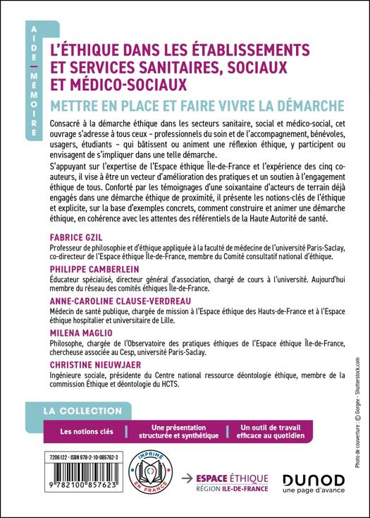 S’appuyant sur l’expertise de l’Espace éthique Île-de-France et l’expérience des cinq coauteurs, il vise à être un vecteur d’amélioration des pratiques et un soutien à l’engagement éthique de tous. Conforté par les témoignages d’une soixantaine d’acteurs de terrain déjà engagés dans une démarche éthique de proximité, il présente les notions-clés de l’éthique et explicite, sur la base d’exemples concrets, comment construire et animer une démarche éthique, en cohérence avec les attentes des référentiels de la Haute Autorité de santé.
