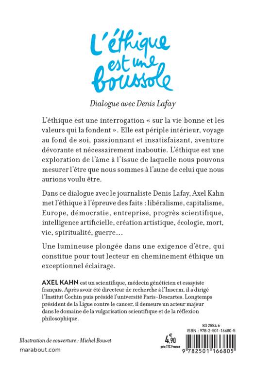 Dans ce dialogue avec le journaliste Denis Lafay, Axel Kahn met l’éthique à l’épreuve des faits : libéralisme, capitalisme, Europe, démocratie, entreprise, progrès scientifique, intelligence artifi cielle, création artistique, écologie, mort, vie, spiritualité, guerre… Une lumineuse plongée dans une exigence d’être, qui constitue pour tout lecteur en cheminement éthique un exceptionnel éclairage.