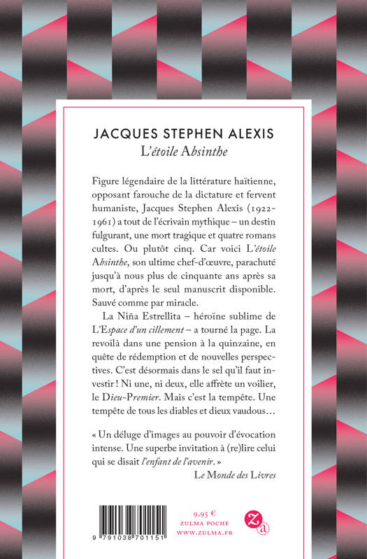Figure légendaire de la littérature haïtienne, opposant farouche de la dictature et fervent humaniste, Jacques Stephen Alexis (1922-1961) a tout de l’écrivain mythique – un destin fulgurant, une mort tragique et quatre romans cultes. Ou plutôt cinq. Car voici L’étoile Absinthe, son ultime chef-d’œuvre, parachuté jusqu’à nous plus de cinquante ans après sa mort, d’après le seul manuscrit disponible. Sauvé comme par miracle.