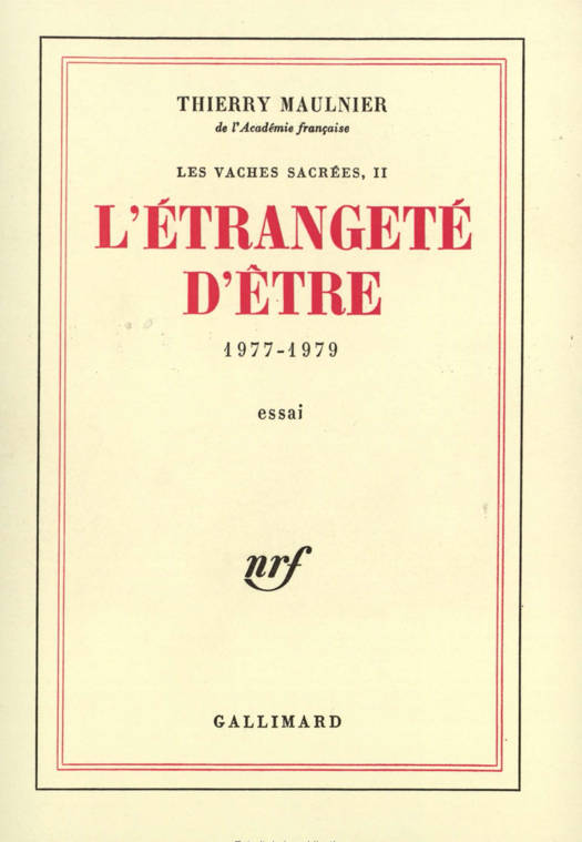 Dans L'étrangeté d'être, Thierry Maulnier poursuit et amplifie l'effort entrepris dans Les vaches sacrées pour une interrogation, une mise en question et parfois une contestation systématiques des vérités et des valeurs dont l'époque actuelle, en dépit de son apparent non-conformisme, se croit encore assurée. Il applique ici son intelligence, sa grande culture, l'agilité et la souplesse de son esprit, aux problèmes essentiels de notre temps et de toujours. Celui de l'existence, par exemple, à la lumière des récentes théories biologiques. "Le hasard aurait-il produit un esprit doué du pouvoir de soumettre le hasard à la rationalité ?" L'Histoire, aussi, apporte quelques sujets d'étonnement. Pourquoi, par exemple, des périodes féroces, comme la Florence des Médicis, ont-elles été propices à un développement artistique inouï ? L'auteur n'élude pas le problème de Dieu, la question du mal ? Sa réflexion, prolongeant Pascal, pèse les avantages et les inconvénients qu'il y a à croire et à ne pas croire. Ce qui nous vaut, au passage, de savoureuses épigrammes : "Dieu gagnerait-il à être connu ?" Il sera question aussi, plus loin, des contradictions et des paradoxes de l'amour, puis des surprises de la création littéraire. On y retrouve le grand connaisseur de Racine, le grand auteur de théâtre qu'est Thierry Maulnier. Un des points les plus importants de cette réflexion si diverse concerne la crise de la société libérale, la mauvaise conscience des sociétés capitalistes, le doute qui s'est emparé du monde occidental.