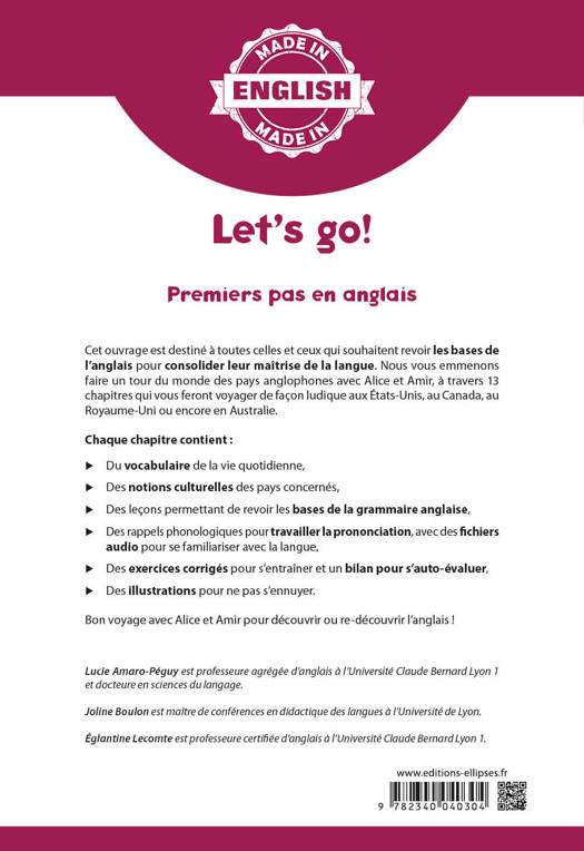 Cet ouvrage de niveau A1/A2 est construit autour de 13 leçons pour apprendre ou revoir les bases de l’anglais en suivant deux personnages autour du monde : aux États-Unis, au Canada, au Royaume-Uni et en Australie.