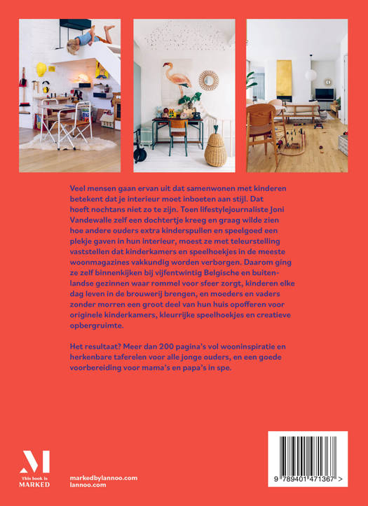 Dat hoeft nochtans niet zo te zijn. Toen lifestylejournaliste Joni Vandewalle zelf een dochtertje kreeg en graag wilde zien hoe andere ouders extra kinderspullen en speelgoed een plekje gaven in hun interieur, moest ze met teleurstelling vaststellen dat kinderkamers en speelhoekjes in de meeste woonmagazines vakkundig worden verborgen. Daarom ging ze zelf binnenkijken bij vijfentwintig Belgische en buitenlandse gezinnen waar rommel voor sfeer zorgt, kinderen elke dag leven in de brouwerij brengen, en moeders en vaders zonder morren een groot deel van hun huis opofferen voor originele kinderkamers, kleurrijke speelhoekjes en creatieve opbergruimte.