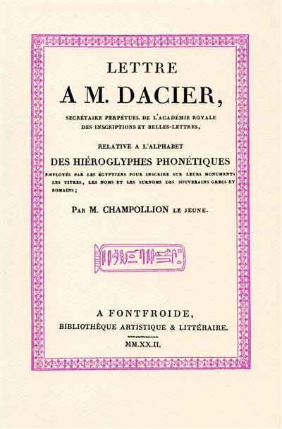 Indisponible depuis plusieurs années, ce texte fondateur, ici en fac-similé rare, reprend sa place centrale au sein de notre collection artistique et littéraire pour célébrer le bicentenaire du déchiffrement des hiéroglyphes par Jean-François Champollion