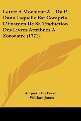 Le livre ""Lettre ������ Monsieur A... du P... dans laquelle est compris l'examen de sa traduction des livres attribu�����s ������ Zoroastre"" a �����t����� �����crit par Anquetil Du Perron en 1771. Il s'agit d'une lettre adress�����e ������ un certain Monsieur A..., dans laquelle l'auteur examine la traduction des livres attribu�����s ������ Zoroastre effectu�����e par ce dernier. Anquetil Du Perron est un orientaliste fran�����ais qui s'est int�����ress����� ������ la religion et ������ la philosophie de l'Inde et de la Perse. Dans cette lettre, il critique la traduction de Monsieur A... en soulignant les erreurs et les incoh�����rences qu'il y a trouv�����es. Il propose �����galement sa propre interpr�����tation de ces textes et donne des explications sur les concepts cl�����s de la religion zoroastrienne.Le livre est consid�����r����� comme une �����uvre importante dans l'histoire de l'orientalisme et de la connaissance de la culture persane. Il offre une analyse approfondie des textes attribu�����s ������ Zoroastre et constitue une r�����f�����rence pour les �����tudes sur cette religion.This Book Is In French.This scarce antiquarian book is a facsimile reprint of the old original and may contain some imperfections such as library marks and notations. Because we believe this work is culturally important, we have made it available as part of our commitment for protecting, preserving, and promoting the world's literature in affordable, high quality, modern editions, that are true to their original work.