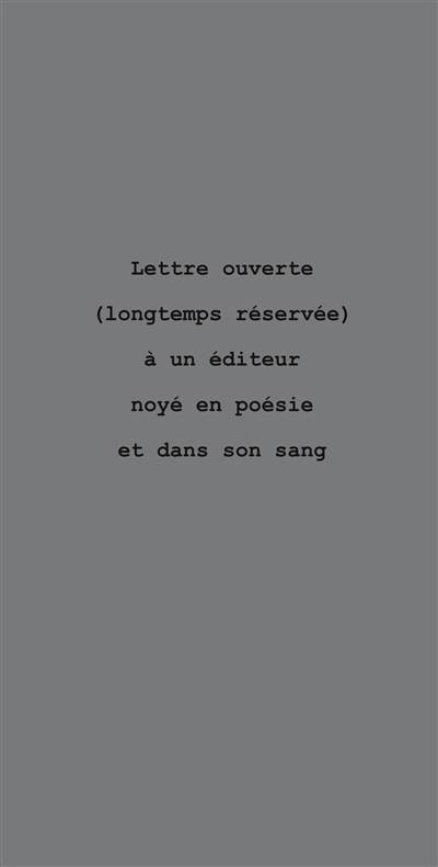 Lettre ouverte (longtemps réservée) à un éditeur noyé en poésie et dans son sang