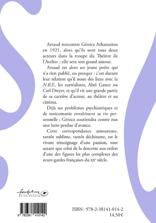 Artaud est alors un jeune poète qui n’a rien publié, ou presque : c’est durant leur relation qu’il noue des liens avec la N.R.F., les surréalistes, Abel Gance ou Carl Dreyer, et qu’il vit une grande partie de sa carrière d’acteur, au théâtretre et au cinéma.