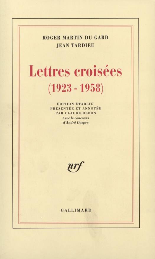 À Pontigny, Roger Martin du Gard rencontre un jeune homme de dix-neuf ans, Jean Tardieu. Un échange épistolaire commence en 1923, qui va se poursuivre jusqu'à la mort de RMG, en 1958. Ce sont ainsi 177 lettres, cartes postales et billets qui ont été heureusement conservés et que nous pouvons lire sous forme de correspondance croisée. Un des mérites de cette correspondance, dont le sujet principal reste la littérature, est d'éclairer de lueurs nombreuses et nouvelles la naissance de l'oeuvre de Jean Tardieu. C'est dans la différence entre les deux hommes, entre les deux hommes, entre deux tempéraments, entre des partis pris esthétiques, que se construit l'échange. C'est aussi dans l'estime et l'affection. "Vous êtes en effet ma vraie famille", écrit Jean Tardieu à RMG le 22 juillet 1932 : le dialogue entre l'écrivain d'expérience et le jeune homme encore tâtonnant a été décisif pour la vocation littéraire de ce dernier. Cette correspondance se lit à la fois pour ce qu'elle pourrait être, un Bildungsroman, un "roman de formation", et comme un véritable dialogue de théâtre, avec son jeu de questions et de réponses, ses mises en scène, son suspense, sa drôlerie, son pathétique : trente-cinq ans de deux vies - exceptionnelles - croisées.