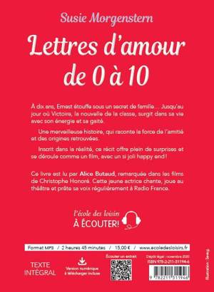 Ernest a dix ans. Dix ans de vide : sa mère est morte le jour de sa naissance et son père a disparu. Dix ans d'ennui : sa vie avec sa grand-mère, prénommée Précieuse, n'a rien de très exaltant : école, goûter, devoirs, soupe. Pas de téléphone, pas de télévision. Seule distraction : une mystérieuse lettre que le grand-père d'Ernest avait envoyée du front pendant la guerre, une lettre indéchiffrable. Ernest est bon élève, solitaire et taciturne, pour ne pas dire muet. Jusqu'au jour où Victoire de Montardent arrive dans sa classe et jette son dévolu sur lui. Car Ernest est beau, ce que les autres filles de la classe avaient déjà remarqué... Lu par Alice Butaud